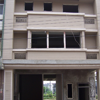 此棟五樓透天電梯別墅,兼具倉庫、辦公室、住宅,建坪300坪之完善住房,外觀為冠軍二丁掛磚及抿石子,建築師特別規劃設計天井,所以內部採光充足,空氣流通。屋主全程參與施工,從規劃到完工,可說是巨細匪夷。